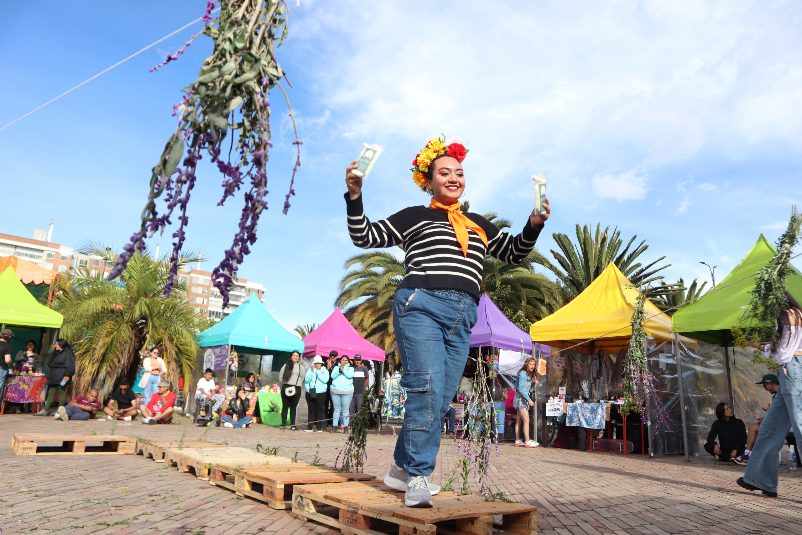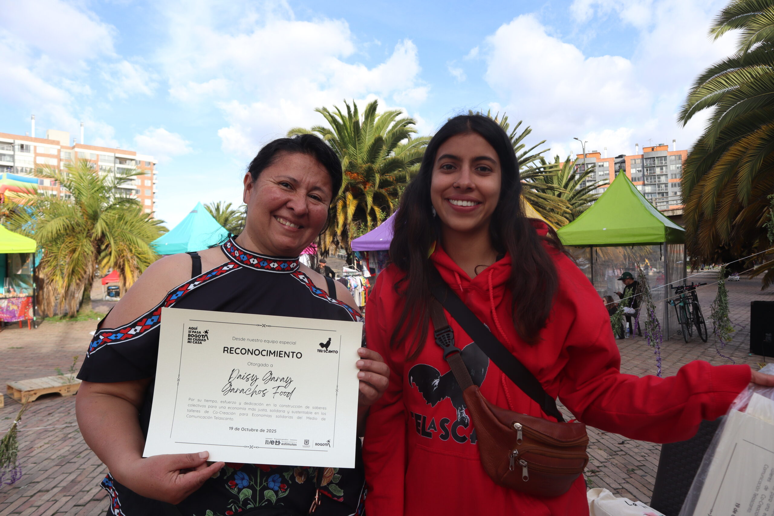 Con este objetivo, junto a todas ellas le dimos vida a la primera Feria Comunicar lo Nuestro, en la que no solo se celebró el camino andado y el resultado de los encuentros a los largo de cinco semanas, además se trató de un escenario en el que se escucharon presentaciones artísticas como el dúo Lavanda Ruda integrado por Anny Caicedo y Paula Parra, una agrupación emergente conformada por mujeres jóvenes, la interpretación narrativa Cuentos Perdidos de Jenny Sánchez, la presentación del grupo de danza de la Fundación Kullayki, el arte dramático circense de Circhimia y el calor de la carranga del grupo Girasol. Pero sin duda el momento más significativo de aquella tarde en el parque El Tintal fue la pasarela de El Otro Desfile una muestra surgida del seno mismo los proyectos participantes, como propuesta de Pueblos en Red con la participación especial de la Red Marginal de Economía Popular que dio lugar a la muestra de sus proyectos a un público que acompañó y animó esa tarde donde nos reunimos sin pena a Comunicar Lo Nuestro.